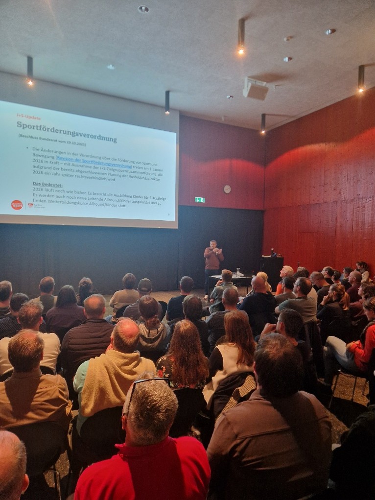 Rund 80 engagierte J+S-Coaches trafen sich am Montag, 3. November 2025, im Mehrzweckaal der Kantonsschule in Sarnen zum jährlichen Austausch im Rahmen von Jugend+Sport. Neben der Auffrischung der J+S-Anerkennung standen spannende Inputs zum Thema „Faszination Lager und attraktive Events“ im Fokus.