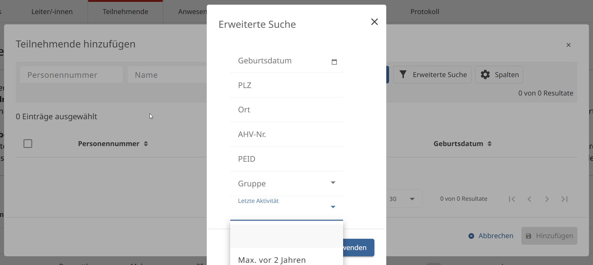 Danach könnt die eure Leitenden und Jugendlichen direkt anklicken.